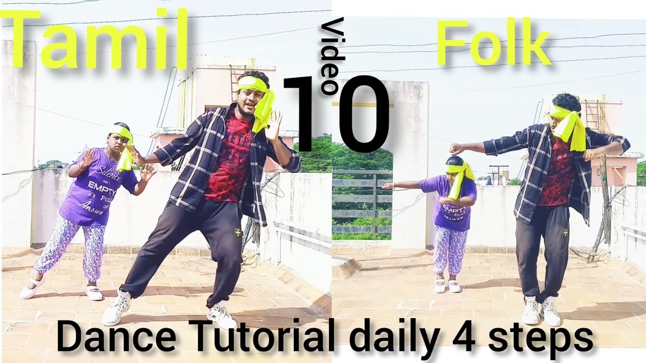Folk Dance Tutorial daily 4 steps Indian cinematic folk Basic Tamil Dance video 10 kids dance class